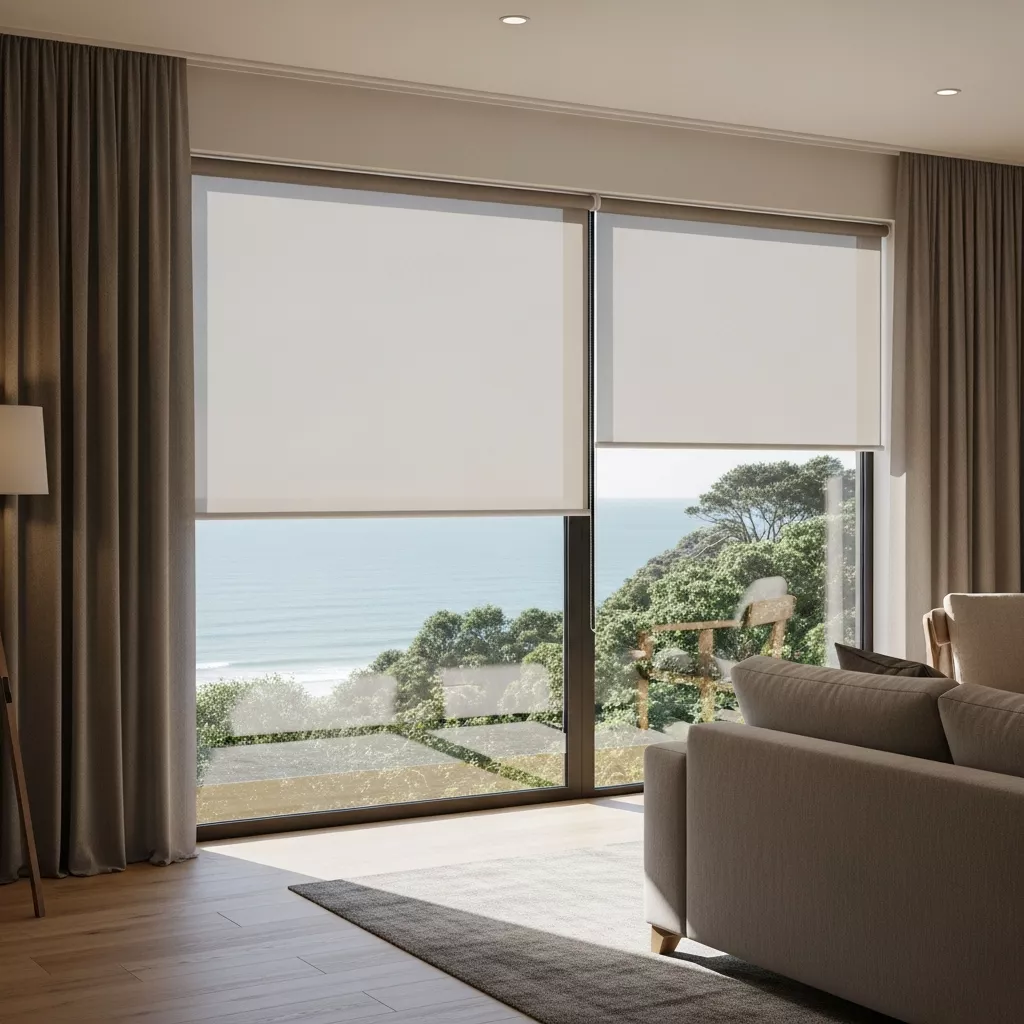Living Areas (North-Facing): Auckland’s north-facing rooms receive intense sun exposure. Sunscreen blinds with 5-10% openness factors work best, blocking UV while preserving natural light. For energy efficiency, combine with blockout blinds for a dual-system approach.